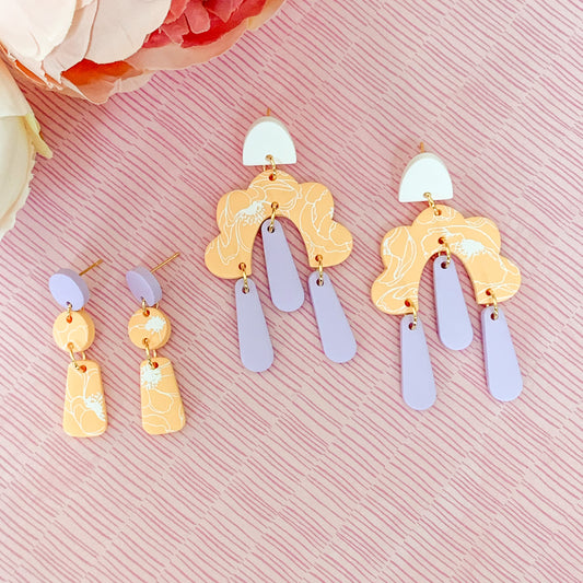 double round painted drop dangle earrings | tangerine & lilac