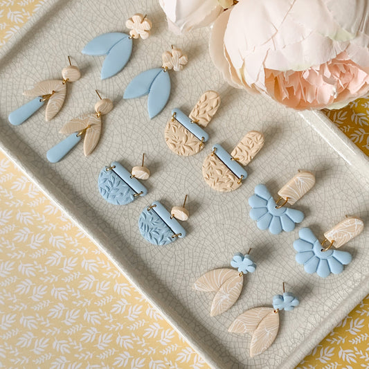 flower & petal painted dangle earrings | sky & ecru