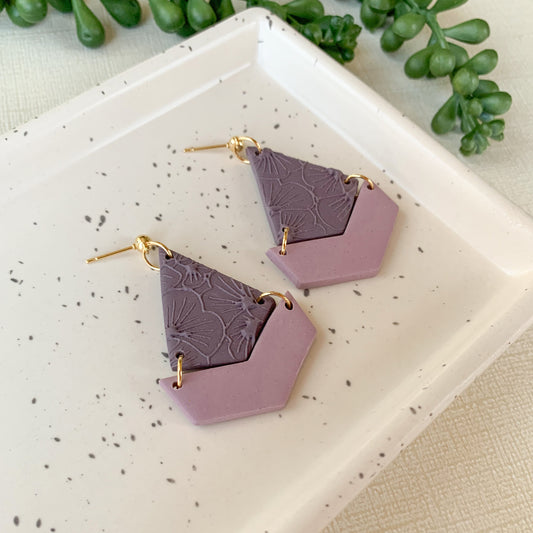 double pointed bell textured dangle | eggplant & mauve