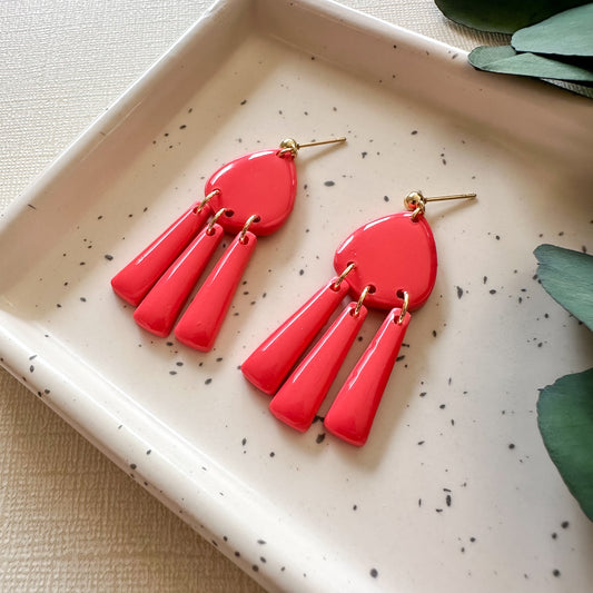 coral floral long arch dangles
